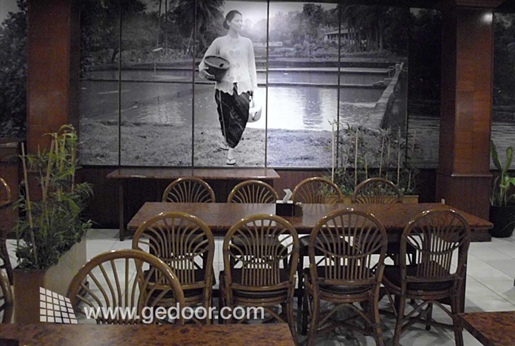 Memasuki Restoran Nyai Kuring, anda akan dipikat oleh sejumlah lukisan yang tergantung di dinding. Lukisan cukup besar dan merupakan gambaran seputar kehidupan sosialkemasyarakatan yang ada di desa. Lukisan yang memiliki fenomena itu setidaknya memberikan penjelasan kepada pengunjung, seperti saya, akan pentingnya rempah-rempah yang berasal dari desa. Sajian rempah-rempah yang dicampur dalam setiap makanan setidaknya membuat rasa masakan semakin lezat dan diminati banyak orang.