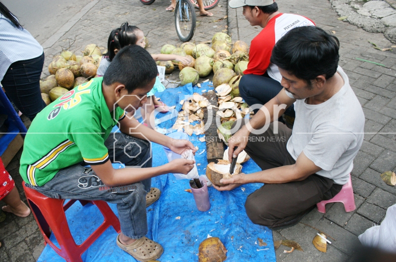 sejumlah penjual es kelapa muda musiman.