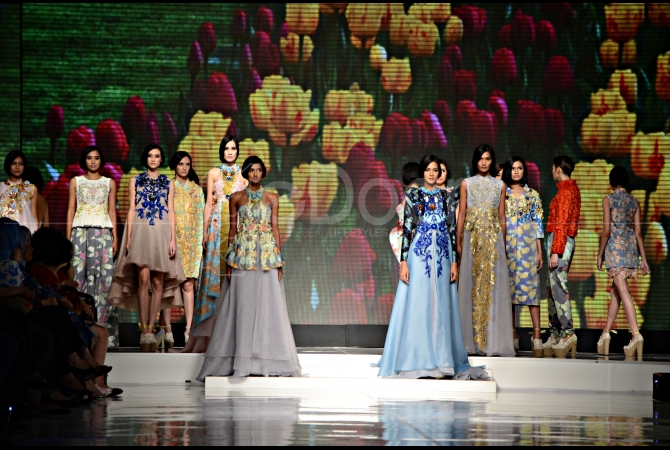 Desain busana yang Malik buat mengacu pada siluet “A” line. Karena siluet tersebut menonjolkan body lenghtwits untuk membuat penampilan terkesan feminism, elegan, dan fashionable. Penambahan aksen juga ditambahkan dengan kombinasi aksesoris seperti mute, bebatuan, akrilik, dan decorative seperti prada, lace, dan lainnya pada setiap bagian seperti leher, tangan, pinggang, dll. (Angga W/geDoor)