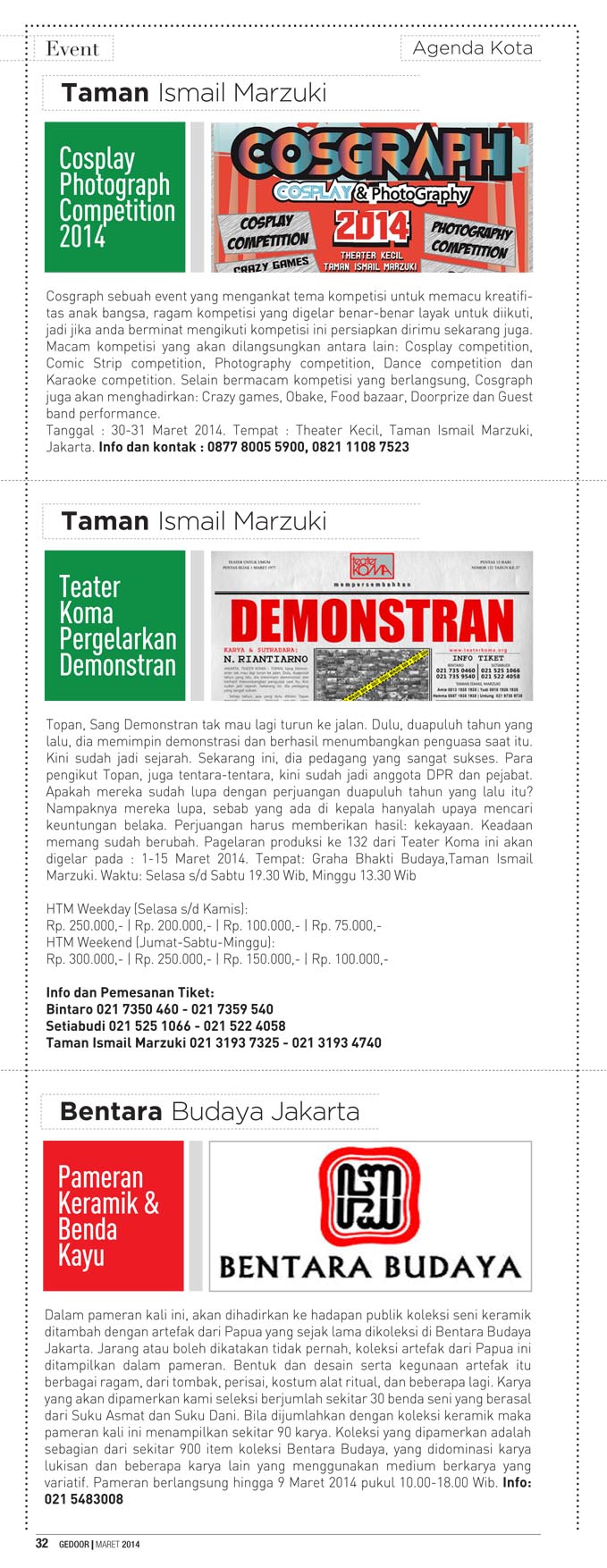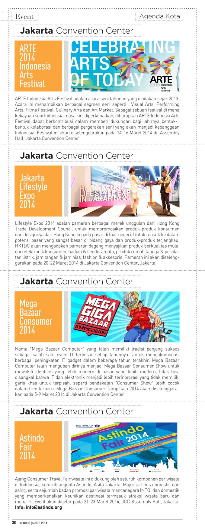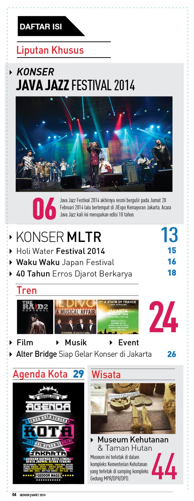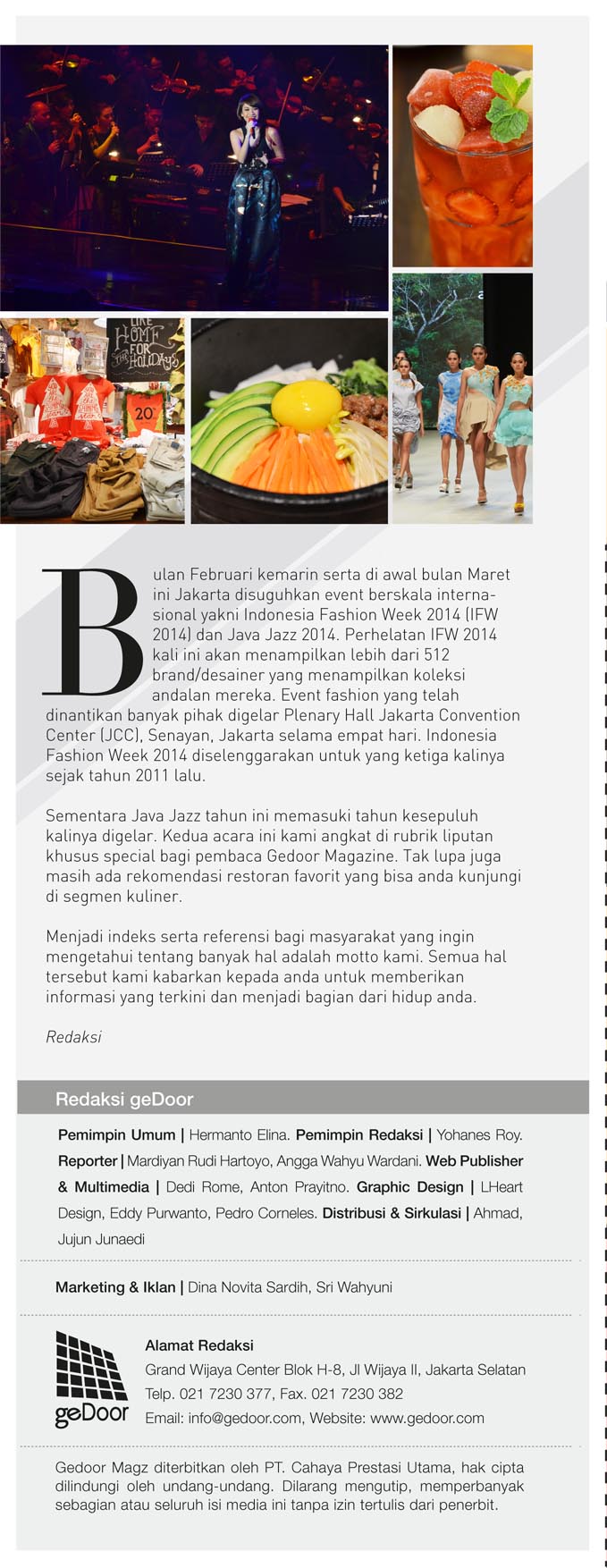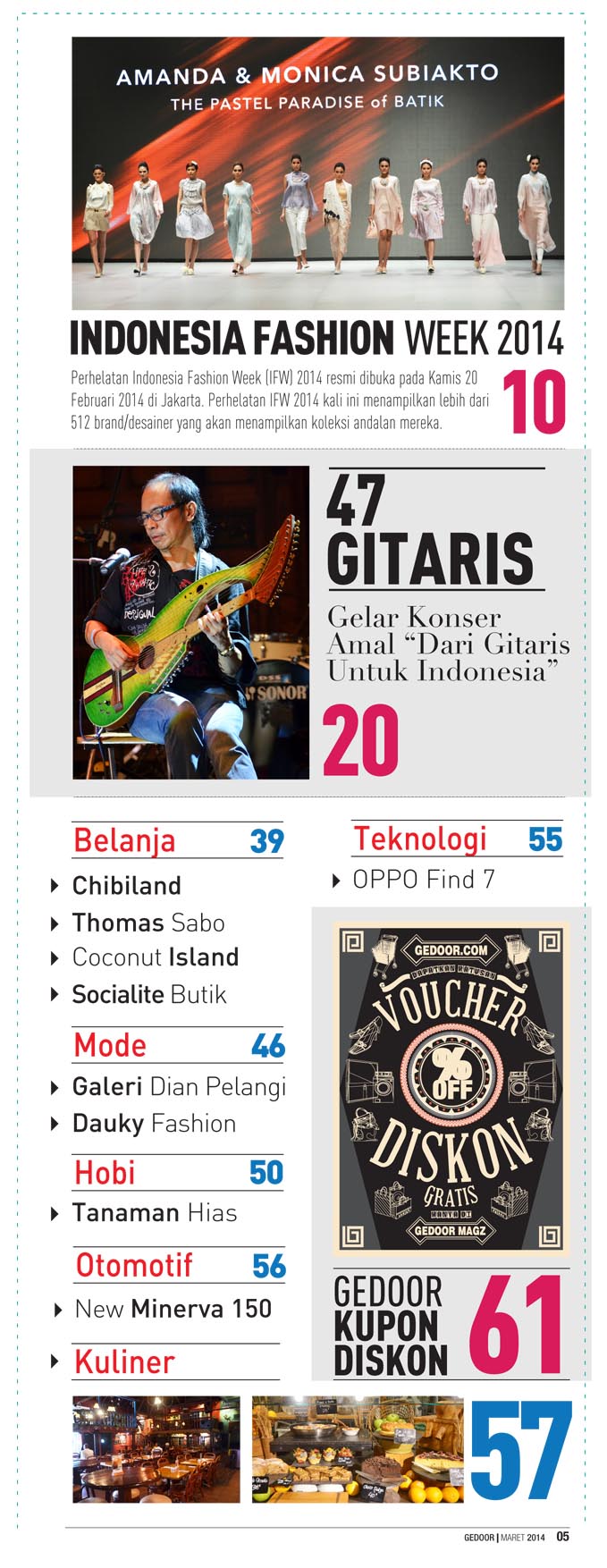 Edisi maret 2014 berisi tentang liputan java jazz festival 2014, indonesia fashion week 2014 dan gedoor kupon