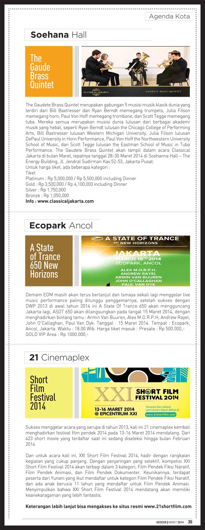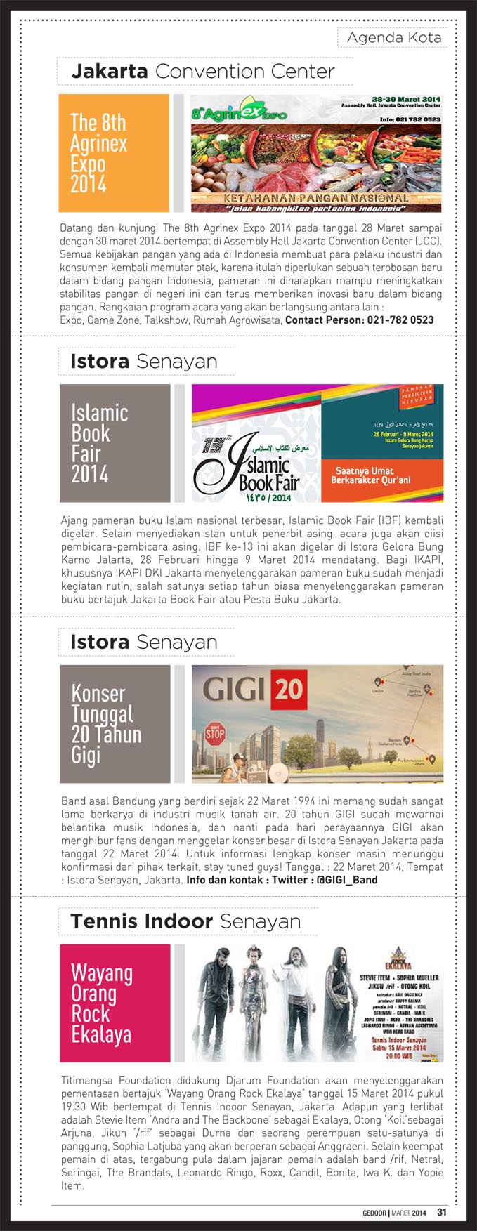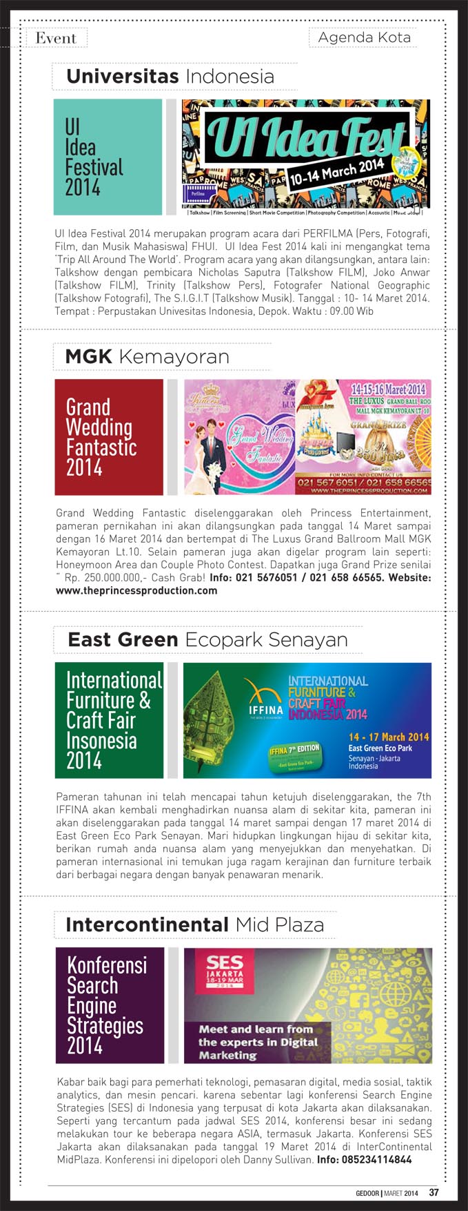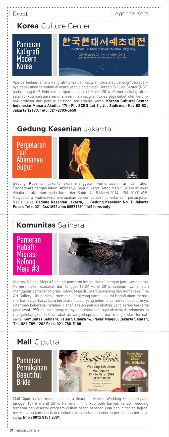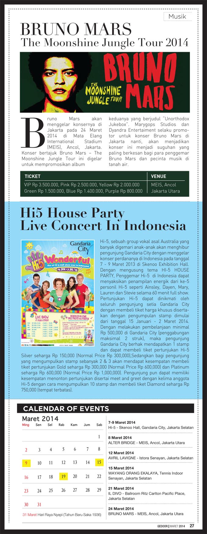 Edisi maret 2014 berisi tentang liputan java jazz festival 2014, indonesia fashion week 2014 dan gedoor kupon