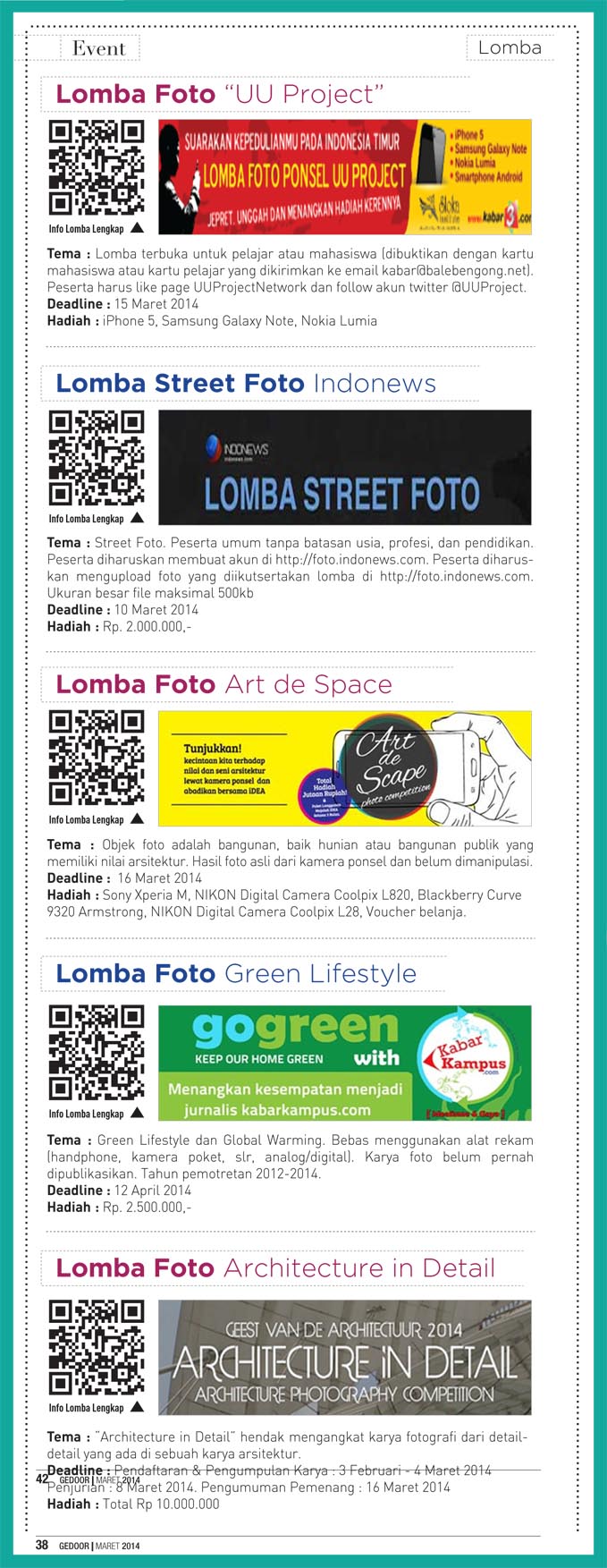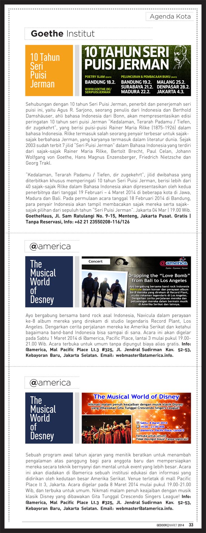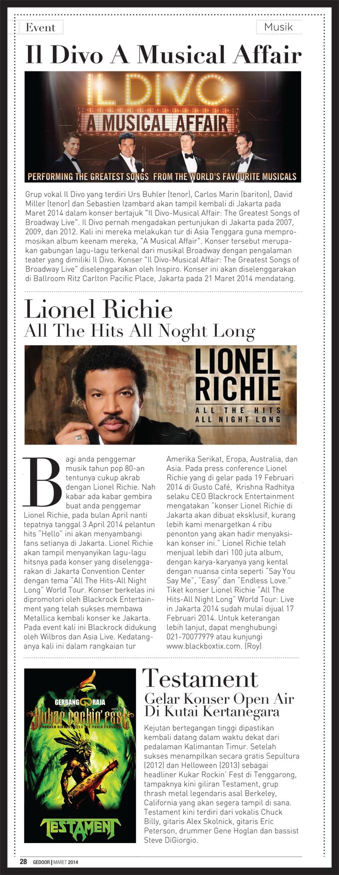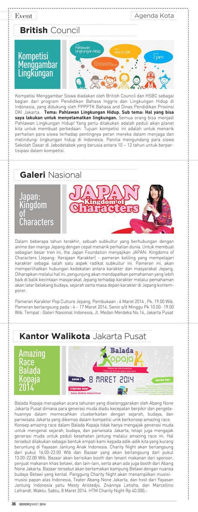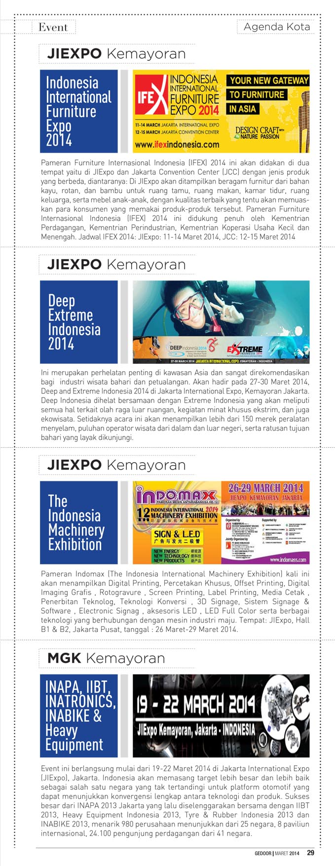 Edisi maret 2014 berisi tentang liputan java jazz festival 2014, indonesia fashion week 2014 dan gedoor kupon