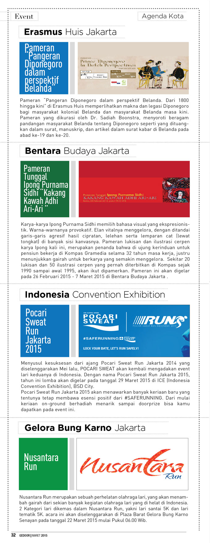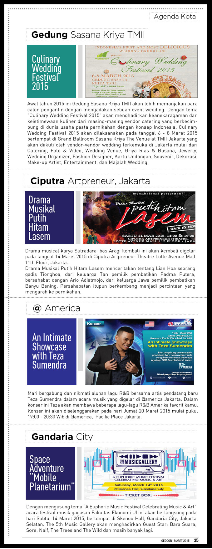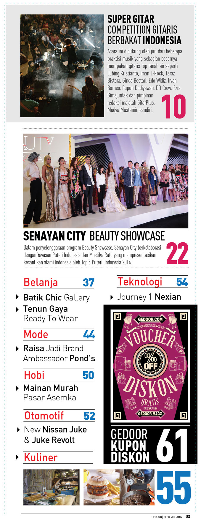 Indonesia Fashion Show 2015, Pameran seni kontemporer karya 4 perempuan norwegia, Afgan gelar konser tunggal, Senayan city gelar beauty showcase 2015